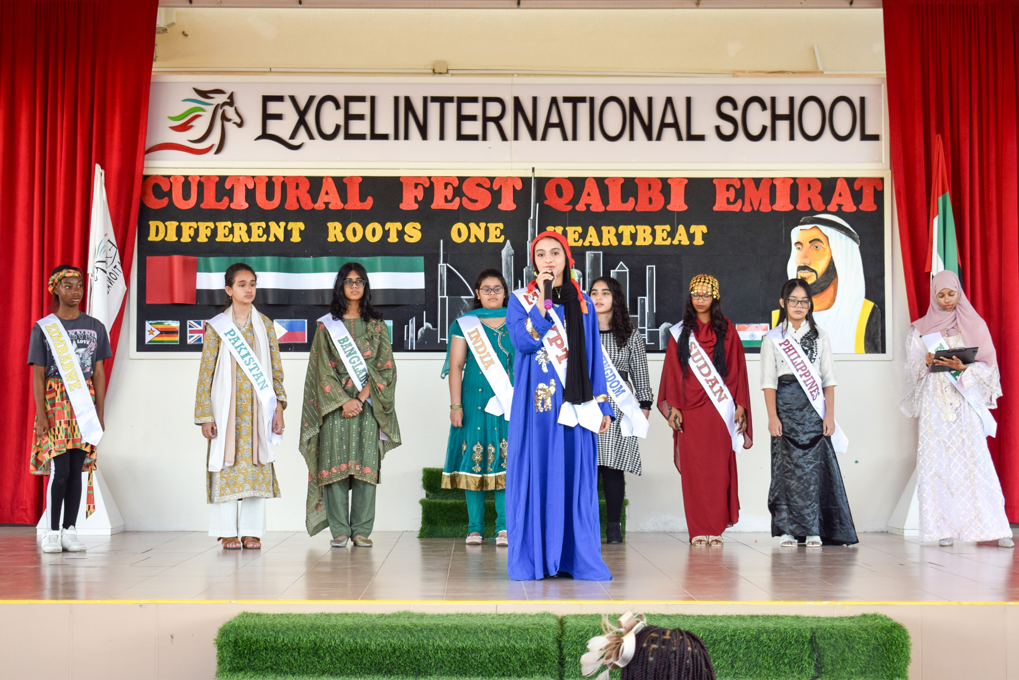 Our Student Ambassadors confidently took the stage, presenting their countries with pride and excitement. Each ambassador highlighted the unique traditions, heritage, and cultural identity of their nation, allowing the audience to gain a greater appreciation of the rich diversity at Excel International School. |